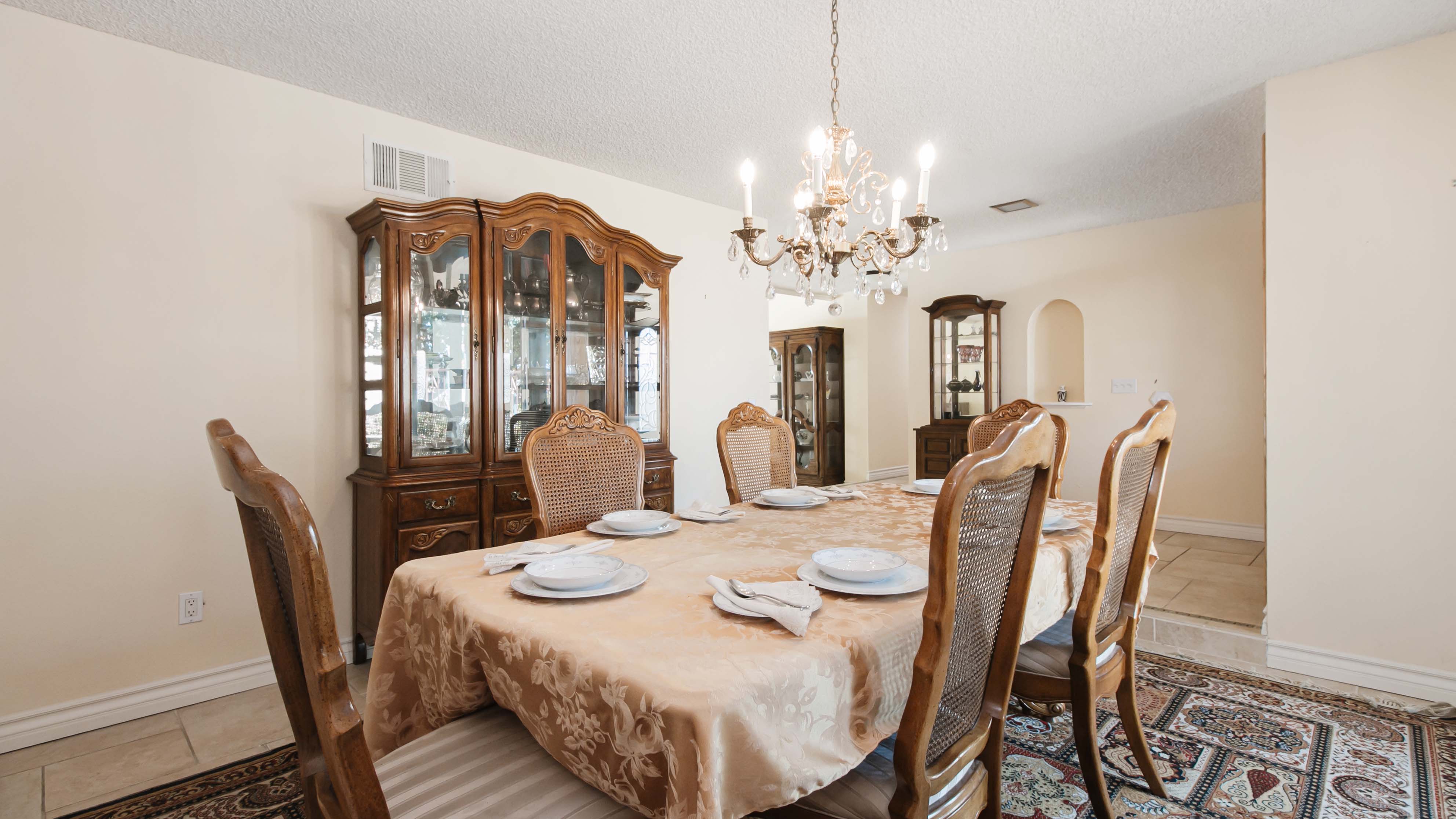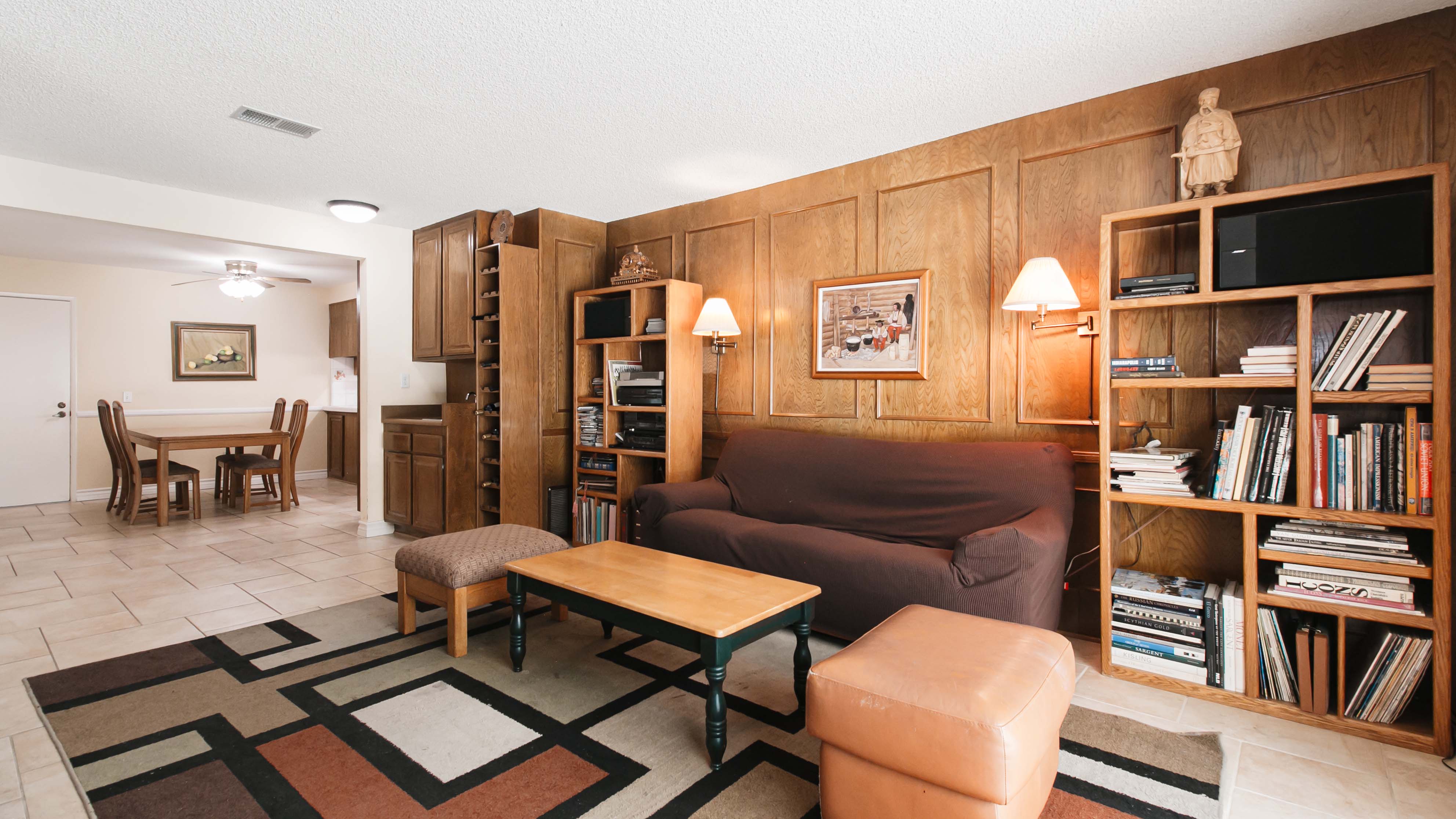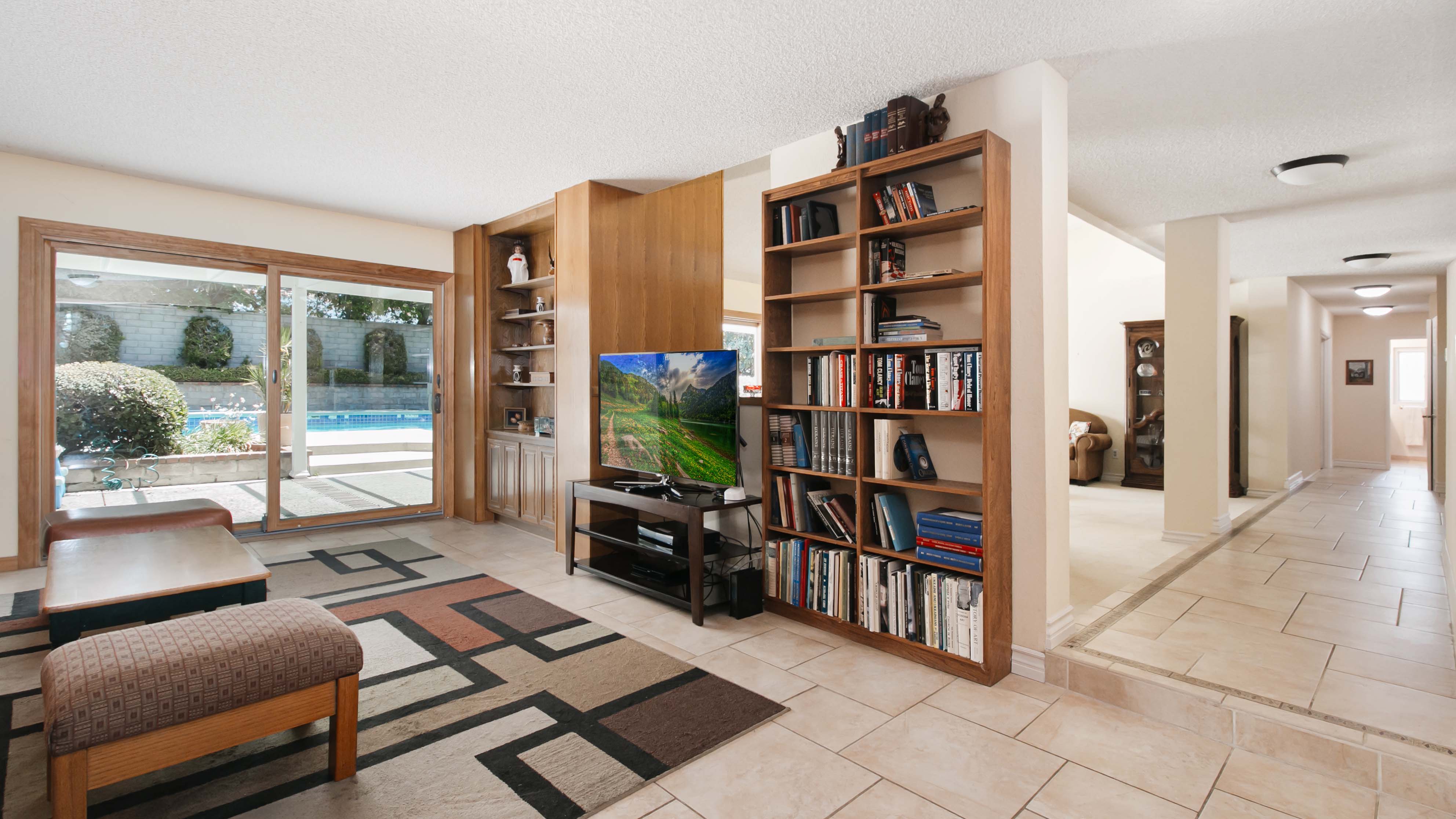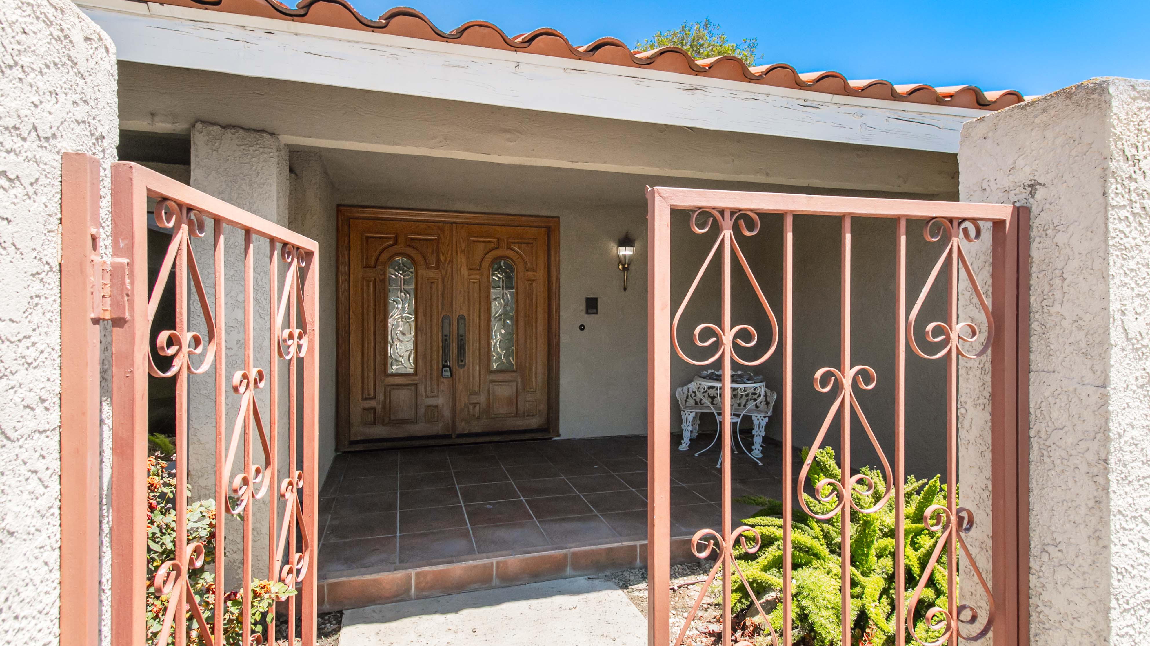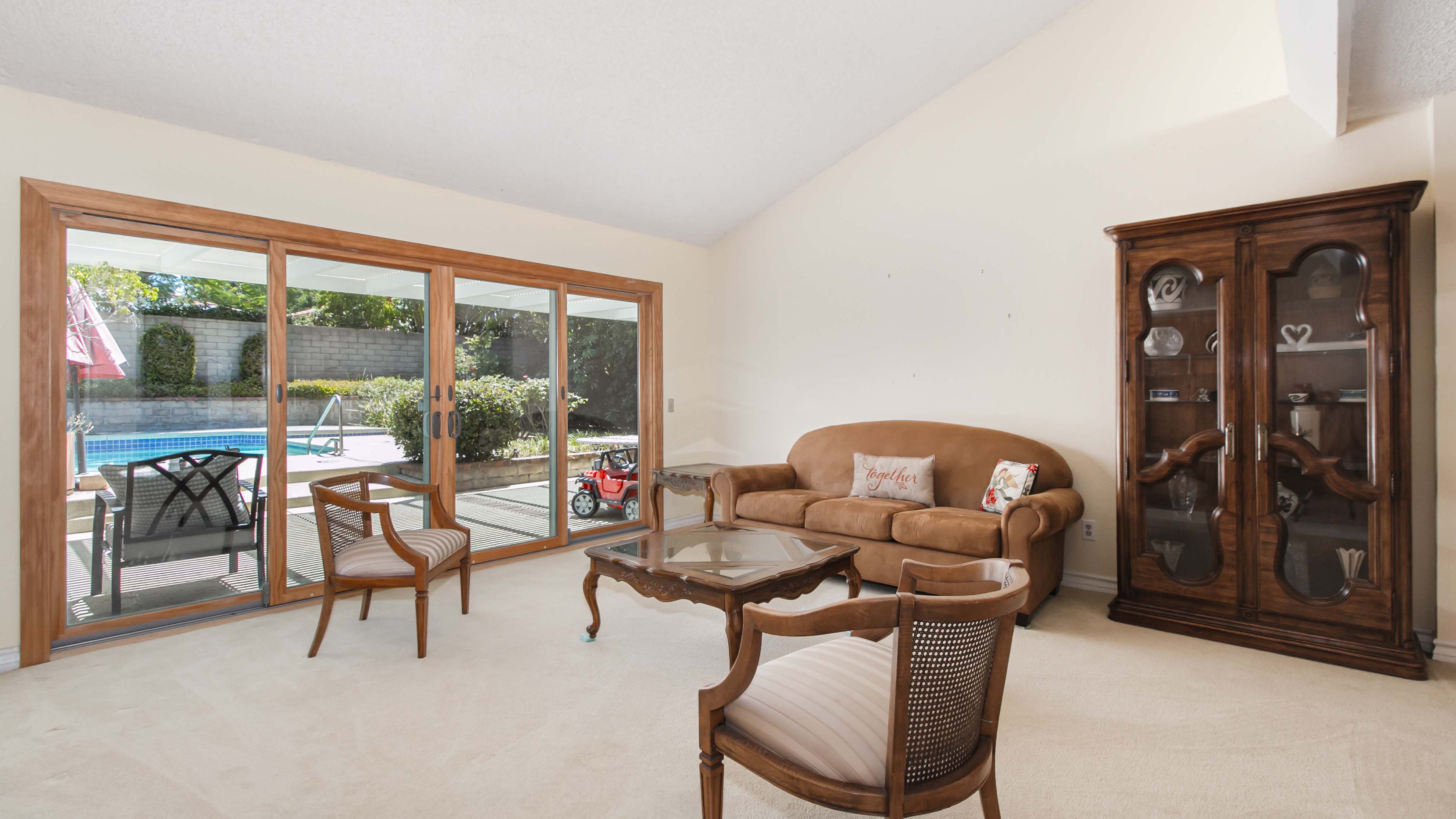 The wait is over, take a gander at this single-story pool home. Enter your home and check out the formal Living Room complete with vaulted ceilings, wood paneling, fireplace and a great view of the yard. Envision the step-down dining room with family, or guests, enjoying a Holiday meal or festive occasion. Relax in the family room while enjoying a beverage from the wet bar. Smell the cooking in the large kitchen, lots of counter top space for preparing meals and plenty of cabinet space for the cooking accessories. The adjacent laundry room has additional storage and pantry space. Nice sized bedrooms with laminate floors. Guest bath with shower – tub combo and dual sinks. Master suite with walk-in closet, view of the yard and a large master bathroom boasting a soaking tub with jets, separate shower and dual sinks. Enjoy the yard featuring a large covered patio, grassy area, built-in BBQ, pool and spa. A three car garage completes this spacious home.