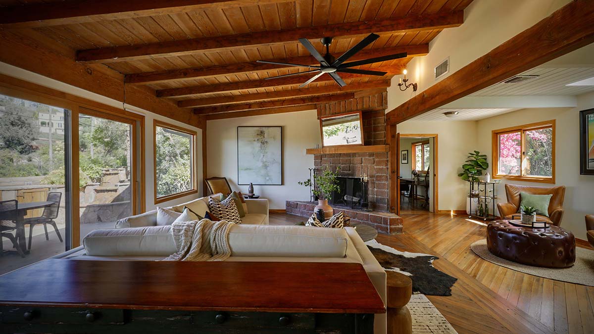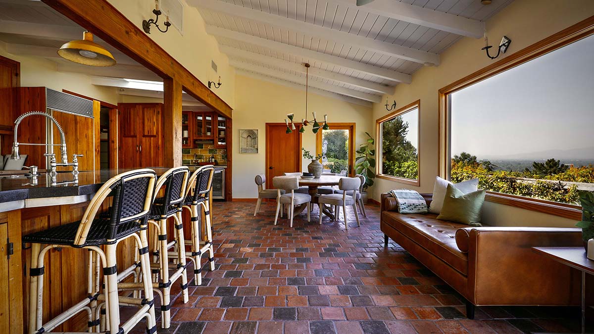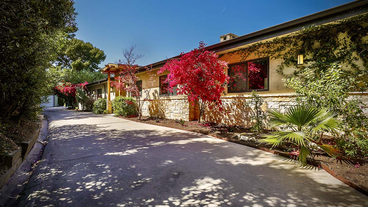 At the top of Ventura Cyn Ave., Koster Ave. is a short road that leads through a gated driveway to this very private, serene 3 bedroom, 2 bath home with den and study. The home was remodeled from the studs up through the roof by its loving owner of 27 years, an Emmy Award winning Cinematographer. Yellow pine flooring and cabinetry, antique French pavers, wood beamed ceilings, brick fireplace, marble kitchen island countertop and marble tiled bathrooms create a warm, cozy, rustic feel in this one story open floor plan with finished basement. Walls of dual pane windows allow for natural light and panoramic views of the Valley, nearby hillsides and distant mountains. Amenities such as subzero refrigerator, tankless water heater, insulated roof, and water filtration system add to the secluded, comfortable environment. Each bedroom including the ensuite primary opens to the outdoors. Spacious country-kitchen with dining and sitting areas looks out over the Valley and opens to the living room and patio with new hot tub and grill. 2 car garage, 2 car carport and space along the driveway provide for ample parking on this almost ½ acre lot. Enjoy the comfort and peaceful easy feeling that you long for in a home.