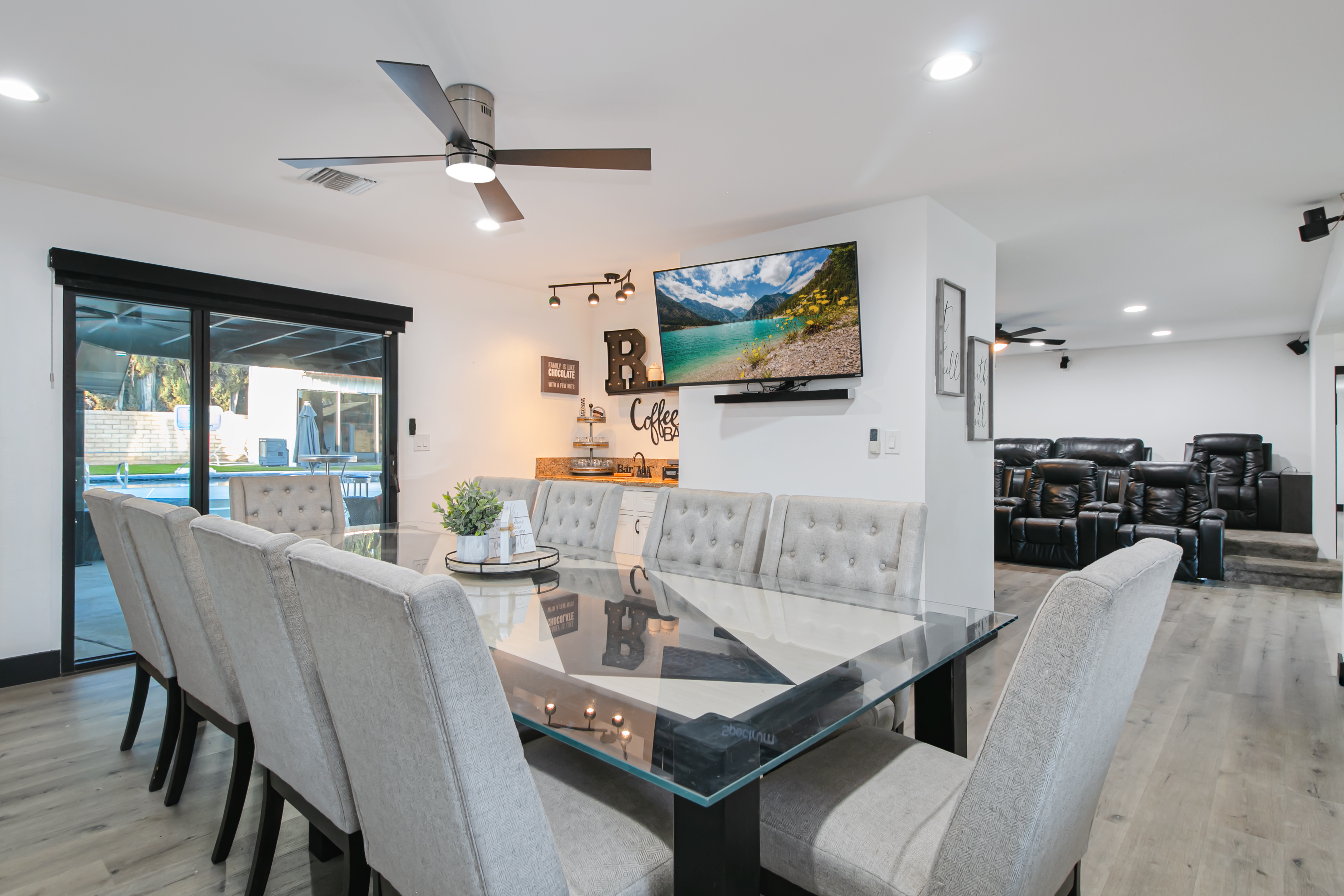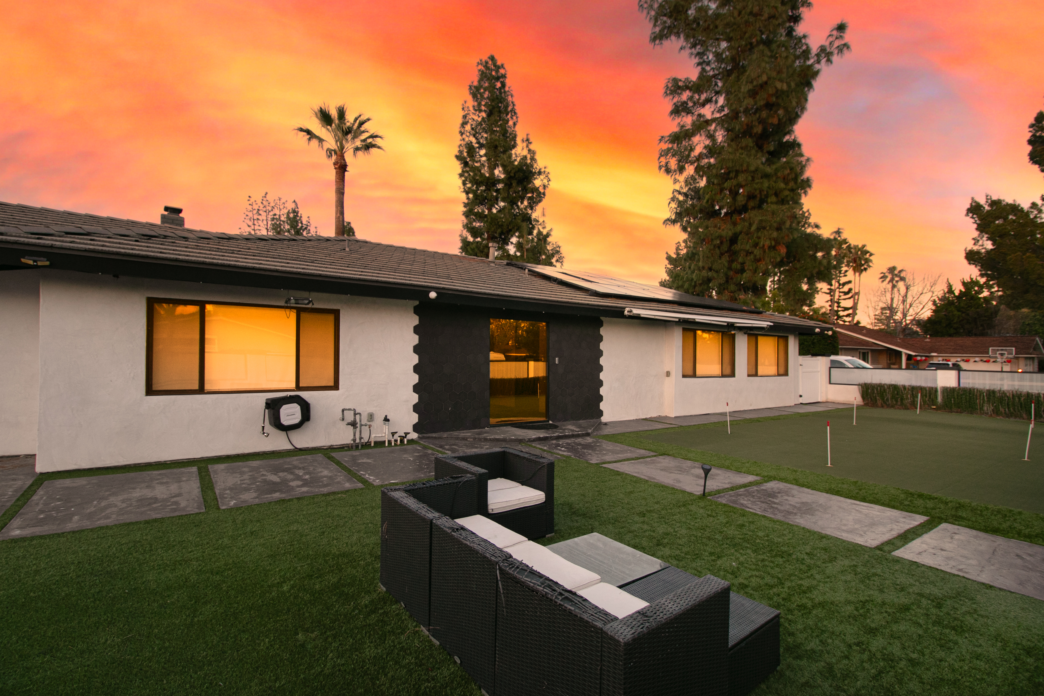 This home is absolutely incredible – a dream home for anyone who loves to entertain, relax, and enjoy some serious hobbies! First off, let's talk about the main house. Six bedrooms and four bathrooms. That's plenty of space for a big family, guests, or even a dedicated home office or two. The living and dining rooms are perfect for hosting dinner parties or just chilling out with loved ones. A "large chef's kitchen with island" – wow! A chef's kitchen isn't just about cooking; it’s a hub for socializing and creating culinary masterpieces. An island provides extra prep space, storage, and additional seating for casual meals. The separate quarters, which are a huge bonus, feature A one-bedroom, one-bathroom setup with a living room and kitchenette that offers so much flexibility. This unit is a part of the main house with a separate entry. The yard is a private oasis featuring a resort style pool and spa , great for relaxing or host amazing pool parties. RV parking – large enough for two vehicles. Now, for the fun stuff! The "Golf Room" which doubles as a "theatre room" is seriously cool. Imagine practicing your swing year-round, rain or shine, right in your own home. And when you're done playing Pebble Beach, you can transform it into an epic home theater for movie nights or watching the big game. With 3,852 square feet of house on a 15,023 square foot lot, there's ample room to spread out and enjoy all these fantastic features. This home truly offers a lifestyle of luxury, comfort, and fun!